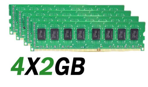 4x 2 GB PC3-10600U 1333MHz DDR3 NON-ECC = 8 GB